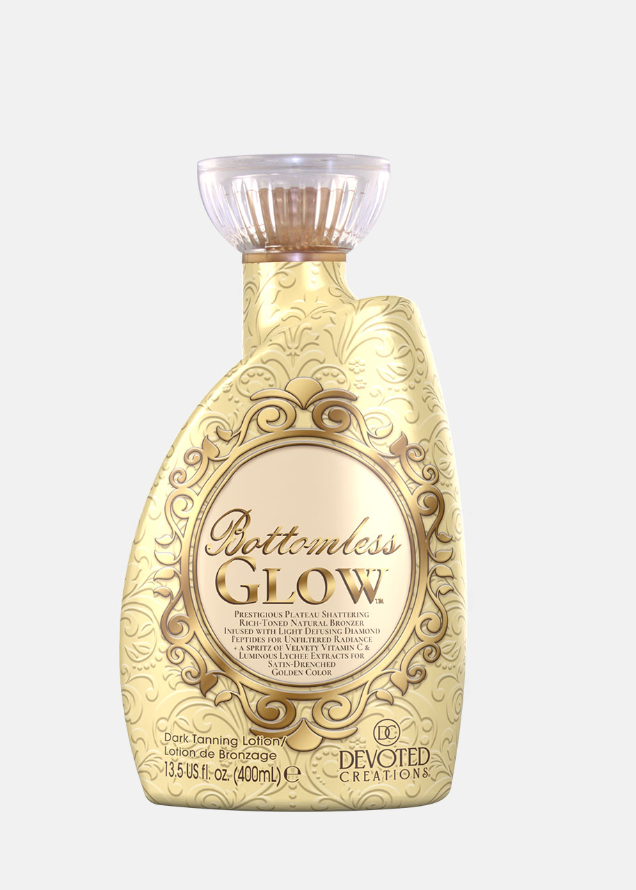 Für den schicksten Farbton ist Bottomless Glow dein Zugang zu ungefiltertem und unbegrenztem, streifenfreiem, fleckenfreiem bronzefarbenem Strahlen! Eintauchen in einen luxuriösen, strahlenden Glow, der niemals endet – dieser ultra-glänzende, DHA-freie natürliche Bronzer verwöhnt deine Haut mit dem Privileg eines perfekt polierten Schimmers.
